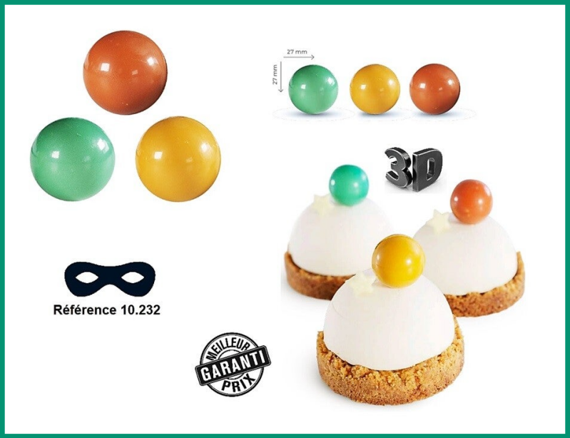 boîte de 80 sphères creuses en chocolat blanc, , assorties 3 coloris, diamètre 27mm